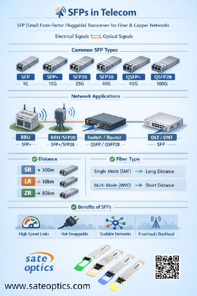 Sate Optics is a leading company in developing and manufacturing Optical Transceivers and Cables solutions for the Data Center and Telecom market. We offer a broad range of networking and communication solutions in the following categories: Optical Transceivers, Direct Attach Cables (DAC), Active Optical Cables (AOC) related networking products.